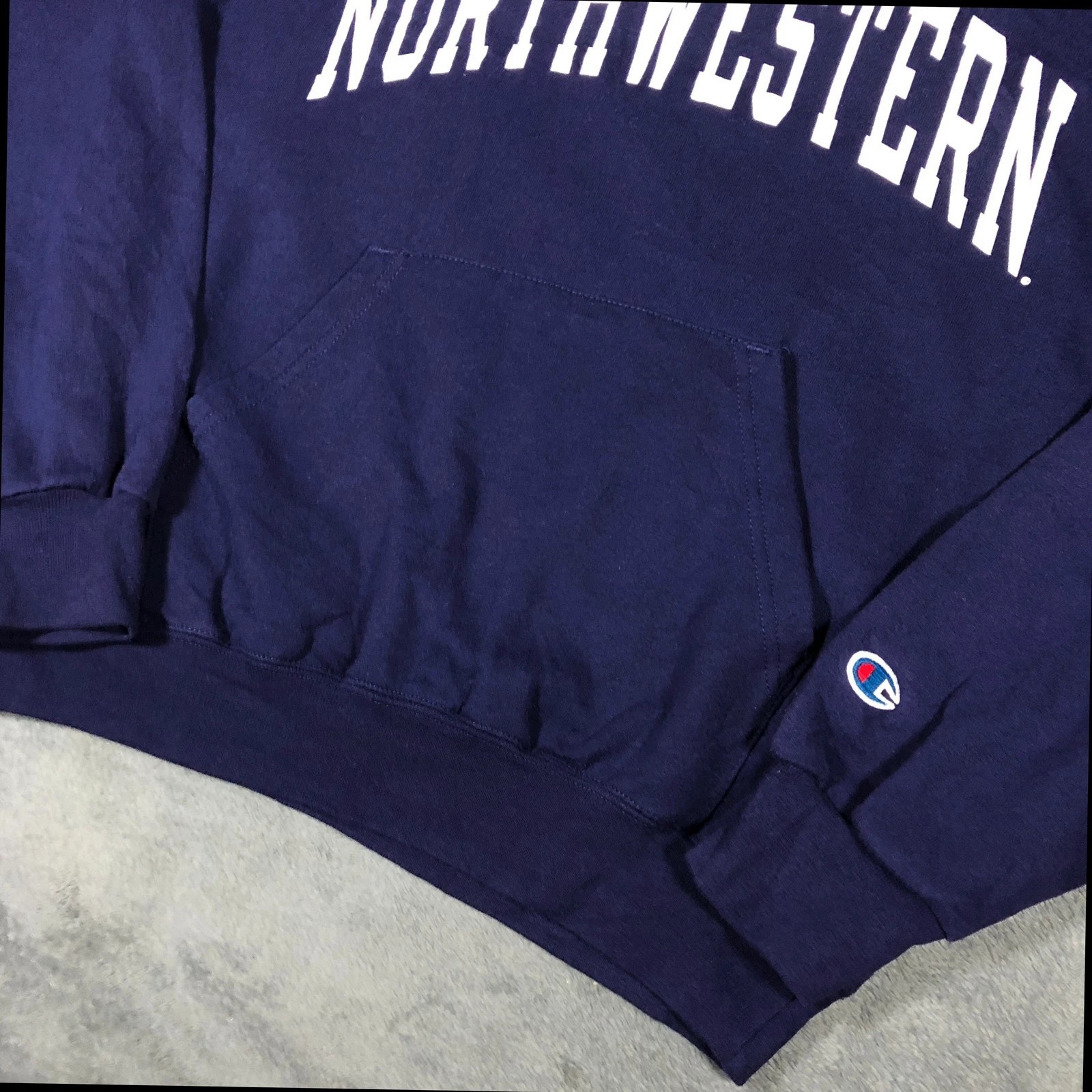 Champion Northwestern purple hoodie with white spell out and front pocket