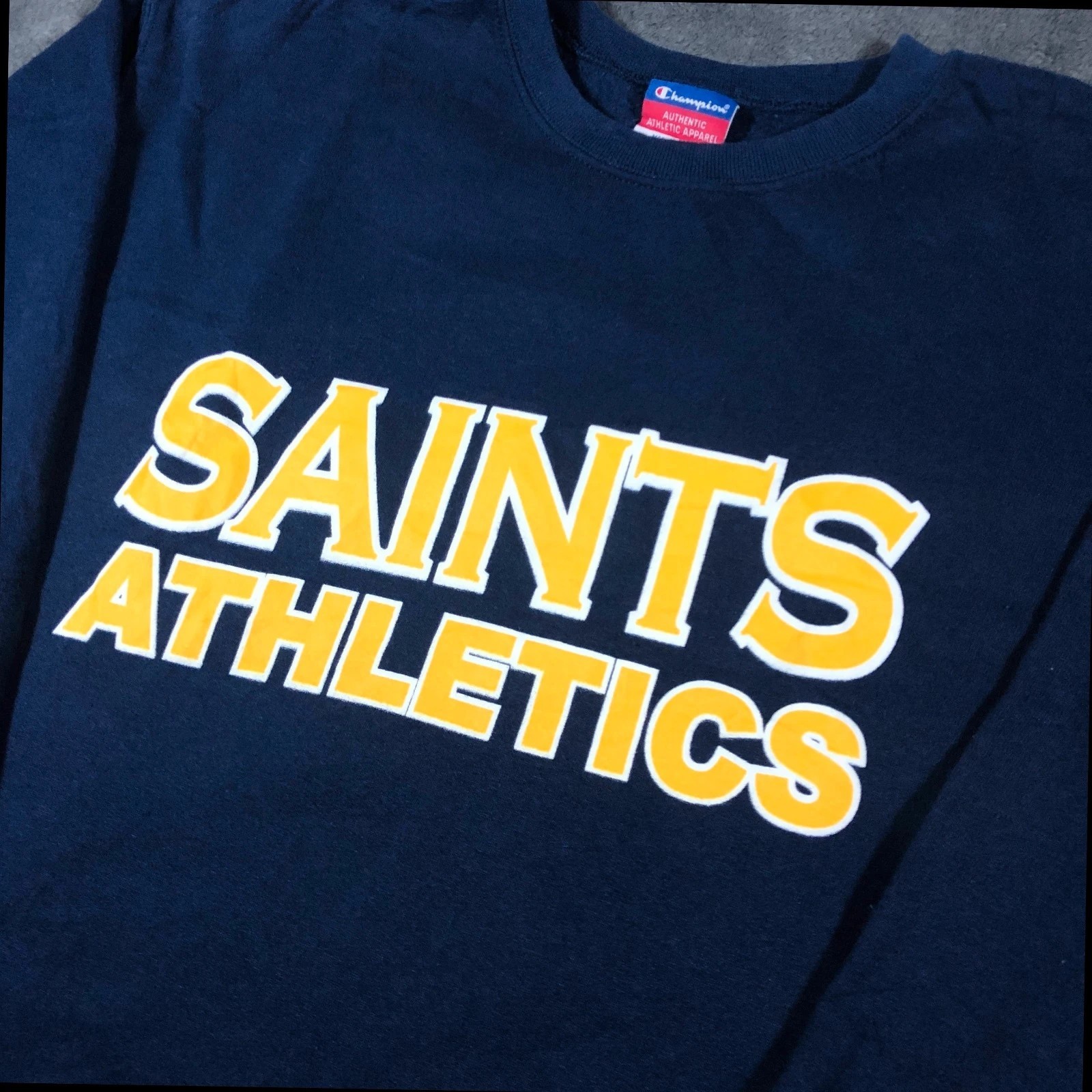 Champion Saints Athletics navy crewneck sweatshirt with yellow spell out M