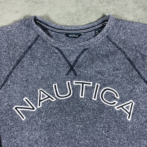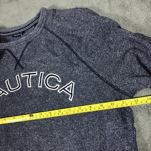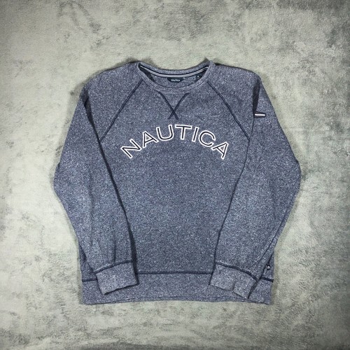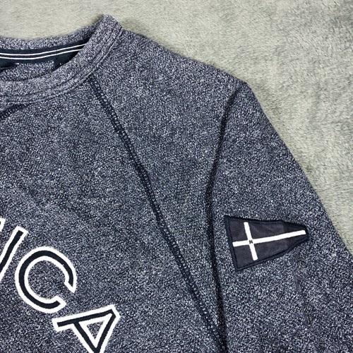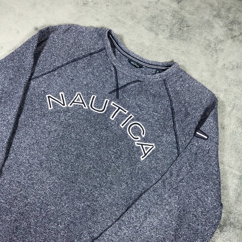 Nautica grey blue speckled spell out crewneck sweatshirt with navy accent lines