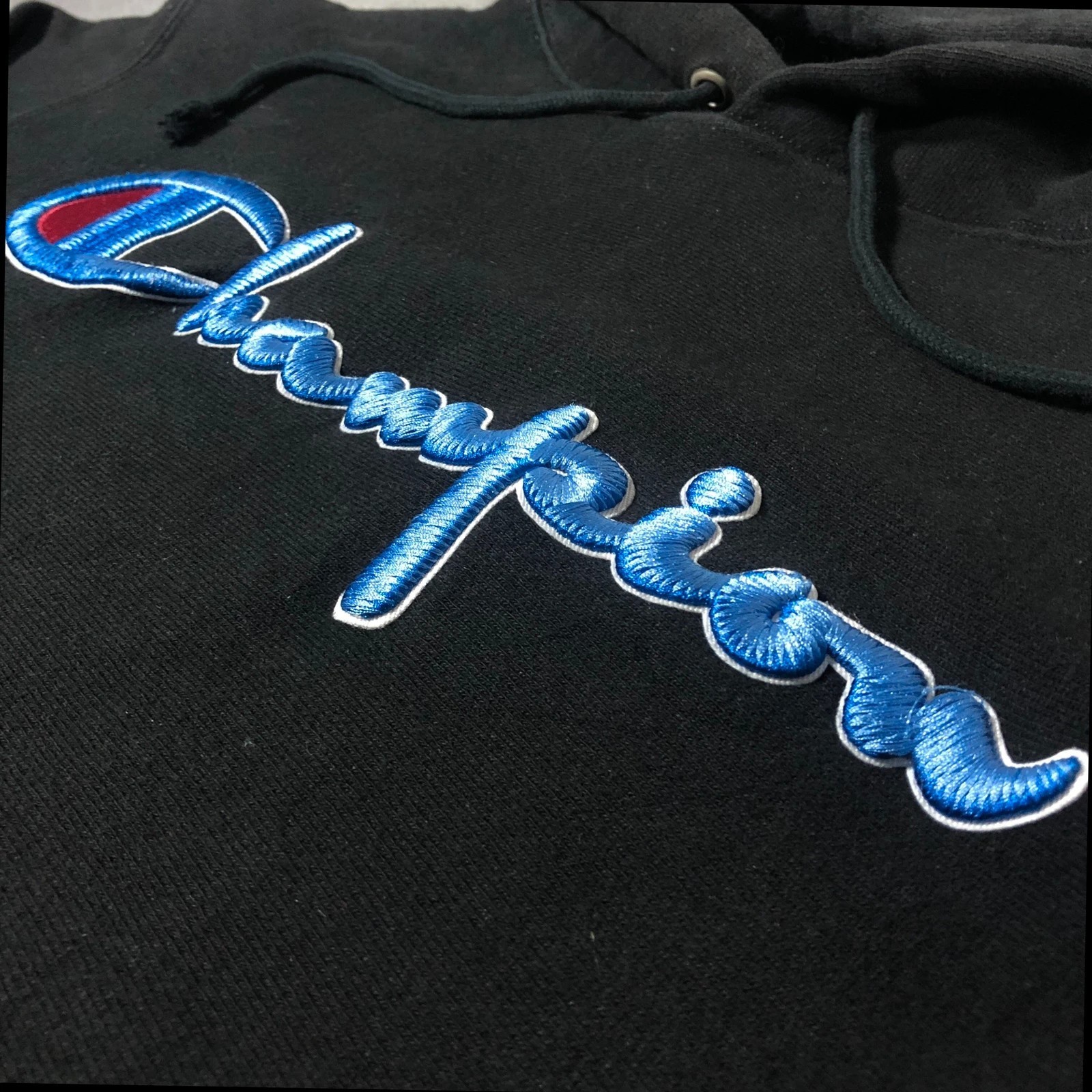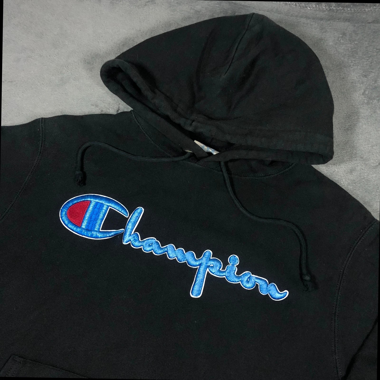 Vintage Champion Reverse Weave black spell out pullover hoodie
