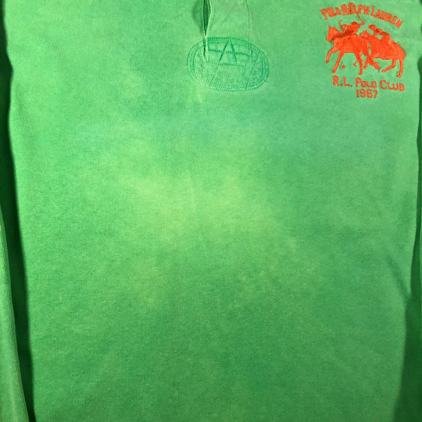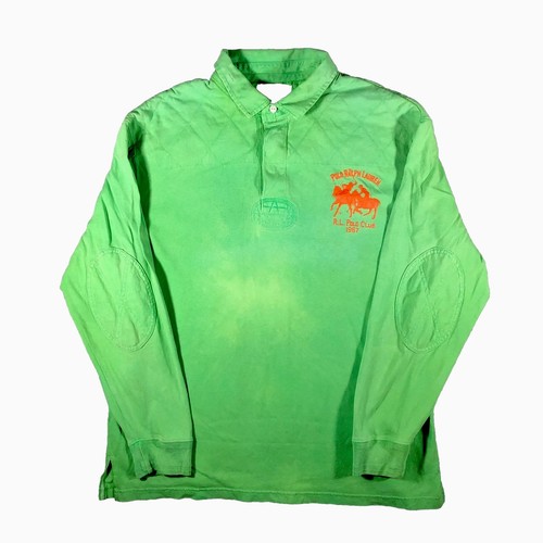Polo Ralp Lauren big logo green long sleeve polo rugby top with reinforced elbows and shoulders